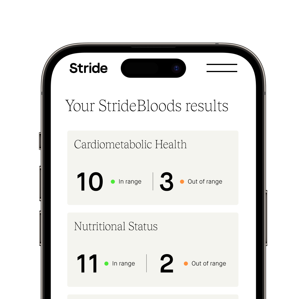 StrideBloods is a test that offers a comprehensive window into your current health status, analysing essential biomarkers, including lipids, hormones and nutrient levels.